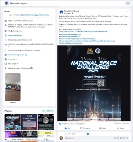 Promotion of poster contest since 27 August 2024 via National Planetarium Facebook.