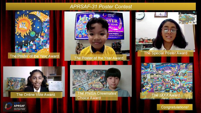 On March 8, 2026, we held the online award ceremony for the APRSAF-31 Poster Contest. This year, the contest saw its highest-ever number of participating countries, with 15 countries represented and 44 artworks submitted. The Online Award Ceremony brought together the award-winning children and other participants from across the participating countries. Points of Contact (PoCs) who organized domestic contests for the APRSAF-31 Poster Contest also joined the event. They supported the coordination of the contest in their respective areas and helped connect participants with the APRSAF Poster Contest.