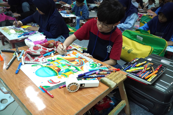 The competition was participated in by children aged 6–12 years, with a total of 104 children. Each participant was given approximately 180 minutes or 3 hours to create a poster based on the given theme. Throughout the event, the children showed great enthusiasm and excitement, producing unique and colorful artworks.
