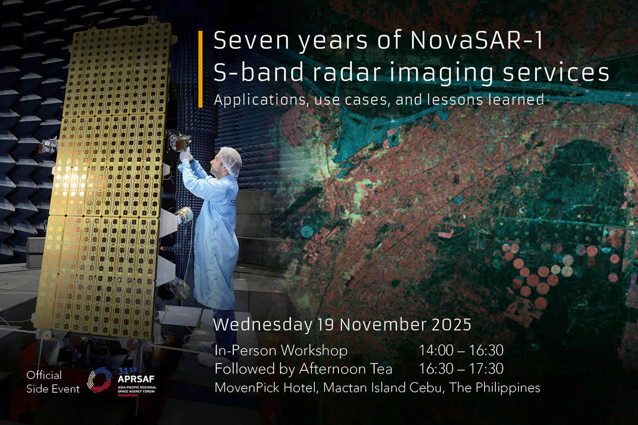 Seven years of NovaSAR-1 S-band radar imaging services – Applications, use cases, and lessons learned Over the 7 years of NovaSAR-1 spacecraft operations, its unique S-band radar data has been used actively by space agencies in the Asia Pacific Rim region. Users include ISRO in India, CSIRO in Australia, DOST and PhilSA in the Philippines, and UKSA in the United Kingdom. This in-person workshop brings together the data share users with interest in SAR data applications to share their experiences with each other and interested parties in the APRSAF. The workshop will include presentations from users, and a Q&amo;A panel. Apart from named presenters that are using NovaSAR-1, we are pleased to offer two presentation slots for those using radar data for applications in the Asia Pacific region. Please contact Alex da Silva Curiel acuriel